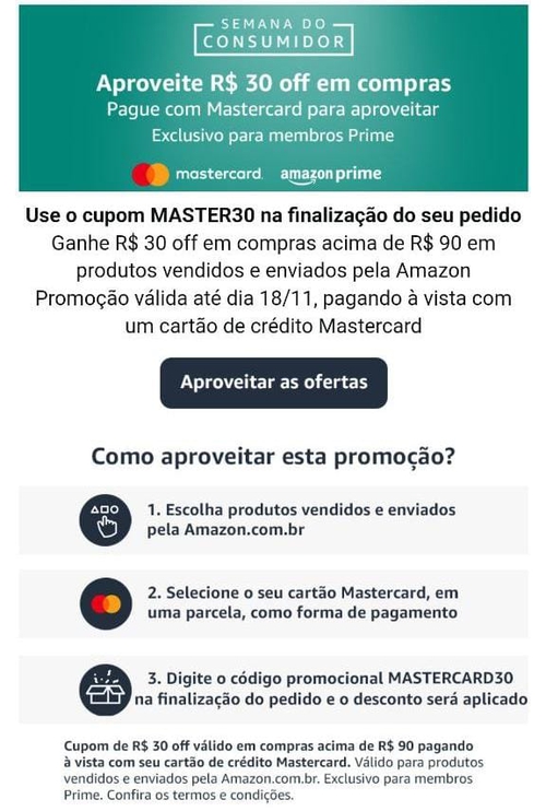 Não está funcionando o meu cupom, mesmo no cartão Mastercard