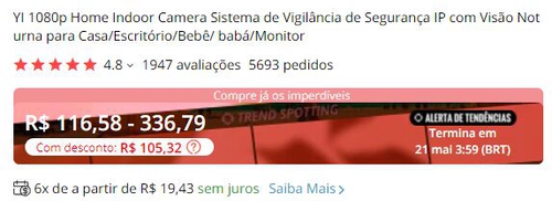 Câmera de Segurança YI Home 1080p - Visão Noturna - 1 peça | R$105