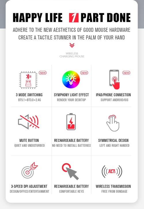 [C. Nova R$8.9] Mouse RGB recarregável blueetoth 5.2/5.1/3.0 +2.4 Ghz para iPad/ iPhone/ Android/ PC