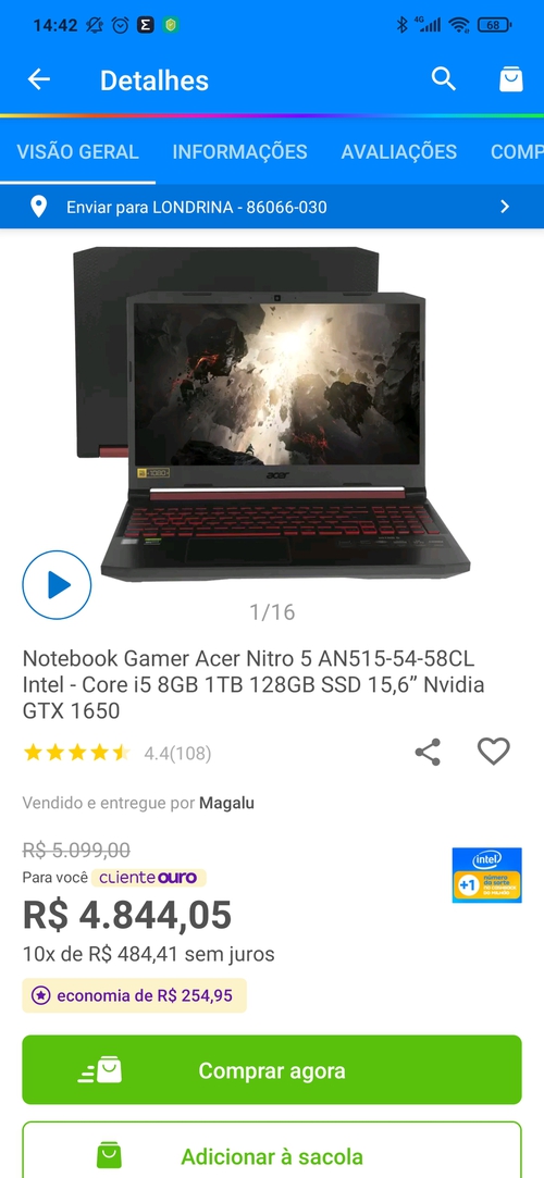 Se for pra pegar um Nitro 5 com Intel g9, melhor pegar o Gaming 3i