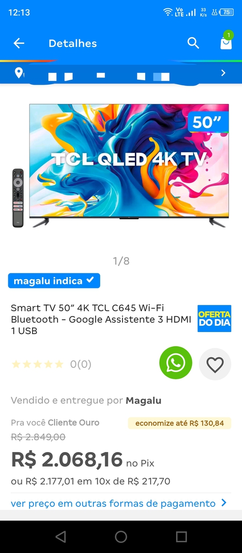 (C OURO APP) Smart TV 50” 4K TCL C645 Wi-Fi Bluetooth