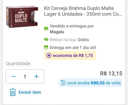 Com o desconto saiu 99 reais com frete grátis, entrega em um dia e 25 reais de cashback