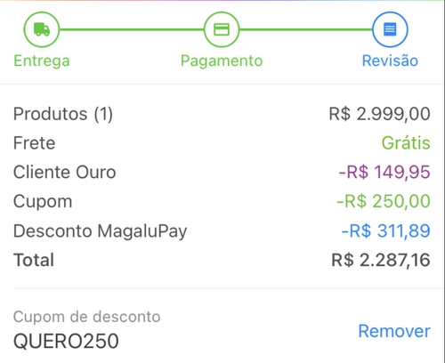 DISPONÍVEL VIA APP: CLIENTE OURO + MAGALUPAY + CUPOM!