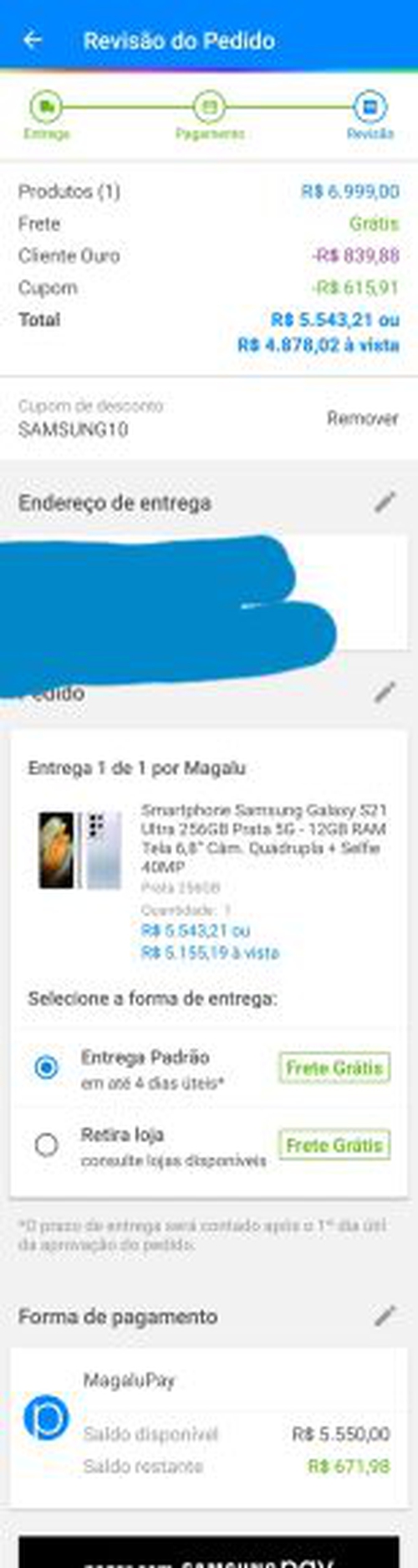 Exemplo: PRODUTO 21 ULTRA NO PREÇO PARCELADO cliente ouro 6599 * 10% do cupom = 5939 * 12% do magalupay = 5226.
