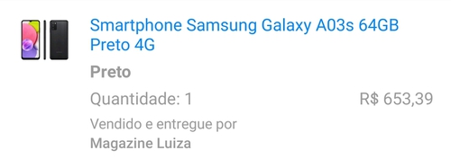 [C.OURO+MAGALUPAY] Smartphone Samsung Galaxy A03s 64GB 4GBRAM Tela6,5