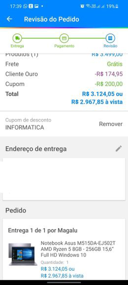 [C. ouro] Notebook Asus AMD Ryzen 5 8GB - 256GB 15,6” | R$2968