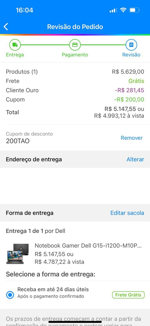 [C. OURO] Notebook Gamer Dell G15-i1200-M10P 15.6" FHD 12ª Geração Intel Core i5 8GB 256GB SSD NVIDIA RTX 3050