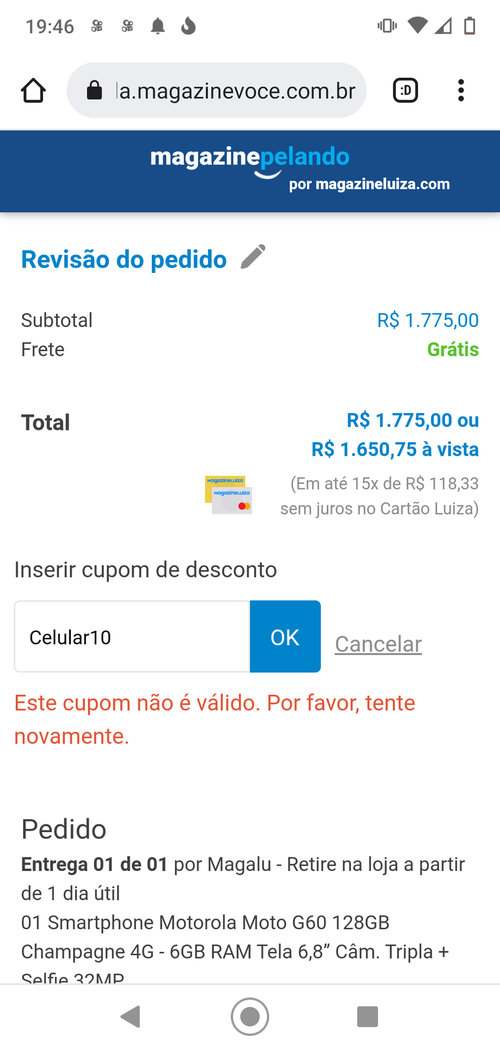 Com esse cupom mais o desconto do magalupay consegui pegar o Galaxy m22 que tava de olho por 981