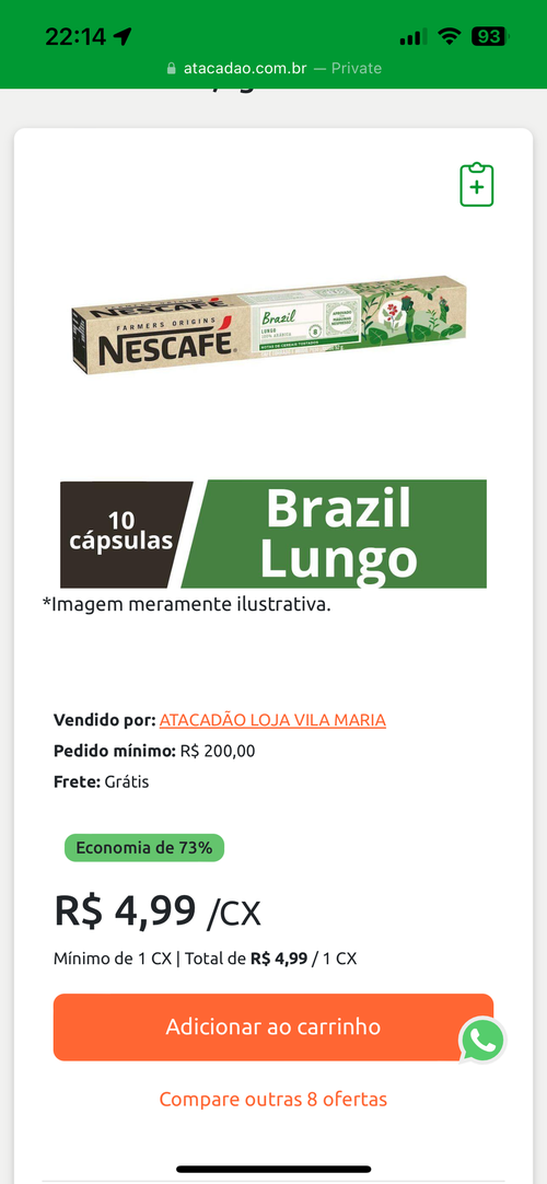 Todos os cafés em cápsula, Nescafé, estão por R$4,99 em várias lojas do Atacadao.