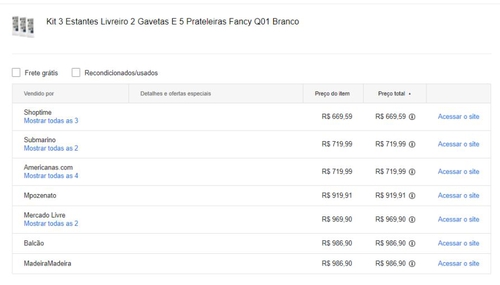 [C. Shoptime] Livreiro Multiuso com 2 Gavetas Branco Kit com 3 - FdECOR | R$670