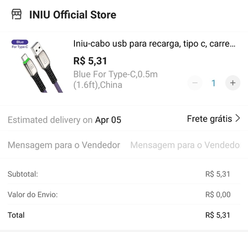 Do mesmo vendedor, tem um outro cabo maia barato ainda e tem tambem 2m por 5 pila.