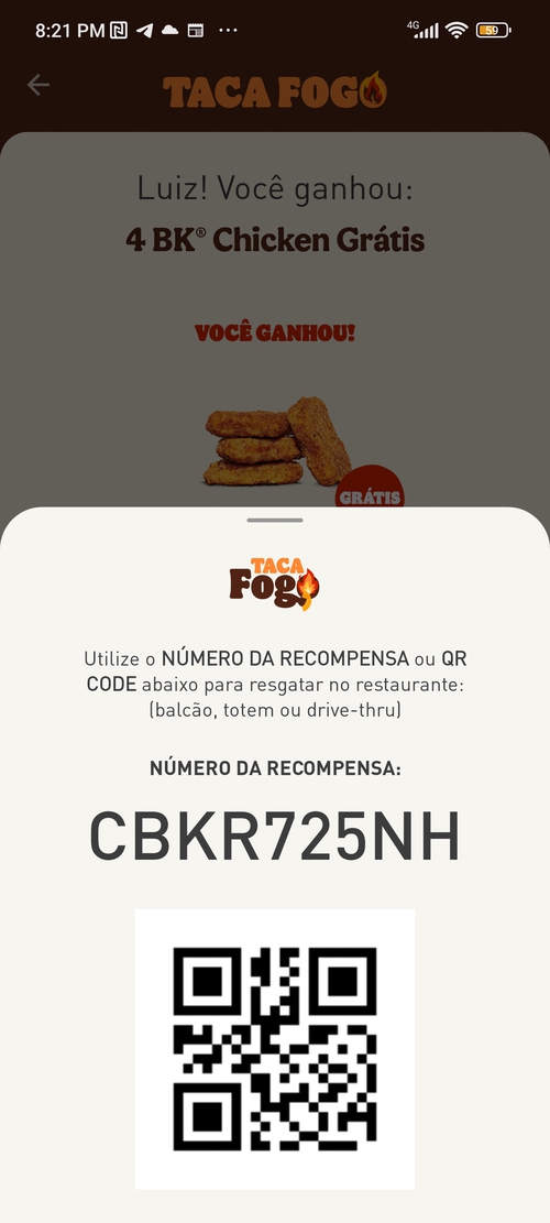 Não consigo sacudir pra ganhar nada, alguém me mansa seus códigos da promo taça fogo, se não for usar é claro
