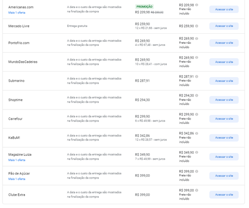Menor preço segundo o Google Shopping