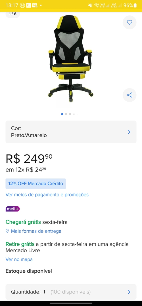 Chegou a minha que peguei nessa promo, veio uma cadeira de escritório genérica 🤡