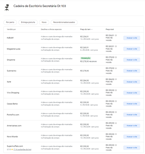 Menor preço segundo o Google Shopping
