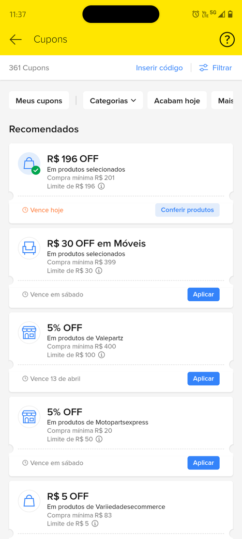 Tem que ir na parte de cupons que vence hoje, a cadeira é a unica que aparece