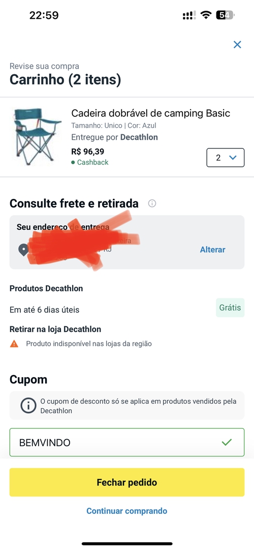 Cupom para novos usuários "BEMVINDO" garante 10% de desconto e pode ser utilizado junto a promoção das cadeiras.Promoção garante R$125,00 de desconto no valor total do produto + R$10,75 de cashback e frete grátis usando todos os passos descritos aqui.