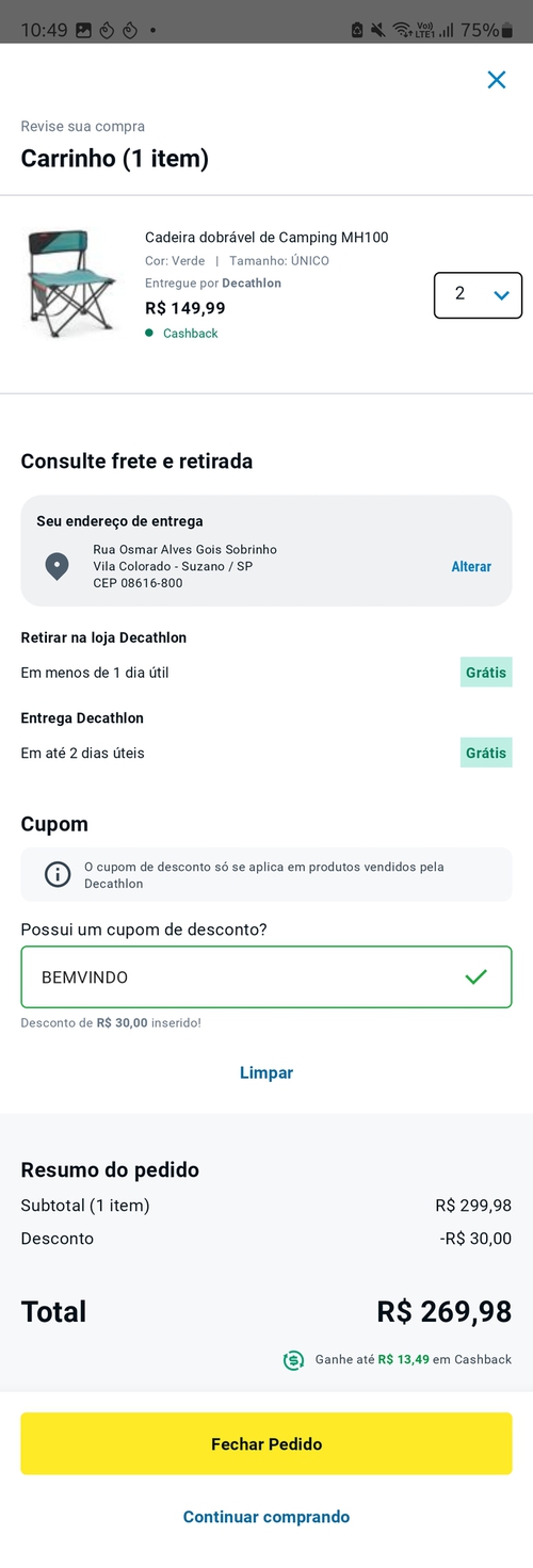 Tá, mas esse cupom é válido apenas para primeira compra, pelo visto.