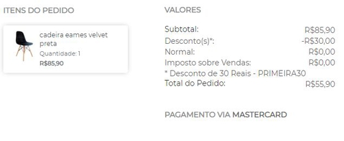 Cadeira Eames Velvet Preta (PRIMEIRA COMPRA) R$56