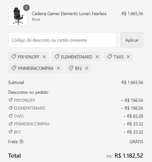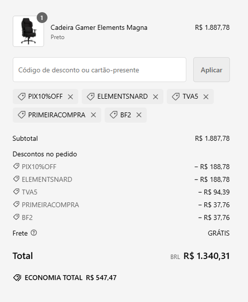 Pagamento no PIX Utilize os cupons: ELEMENTSNARD + PIX10%OFF + TVA5 + BF2 + PRIMEIRACOMPRA