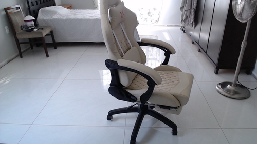 A cadeira é excelente, a minha veio com a almofada do encosto do braço um pouquinho abaixada em uma parte, nada que atrapalhe.