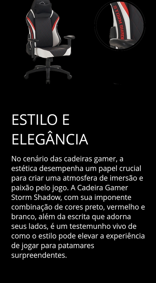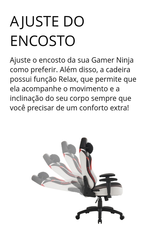 Cadeira Gamer Ninja Storm Shadow, Reclinável, Preta, Branca e Vermelha