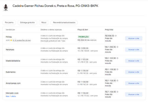 Menor preço segundo o Google Shopping