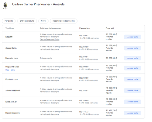 - Menor preço segundo o Google Shopping