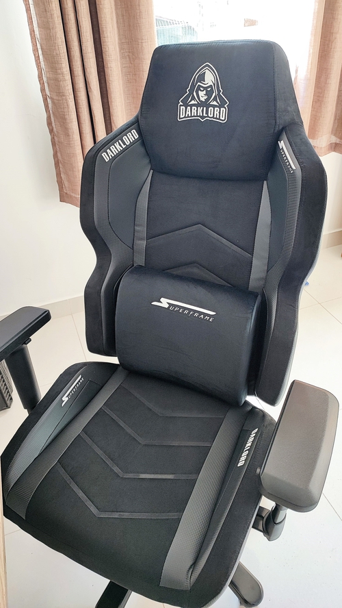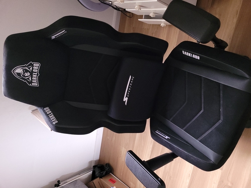 A minha chegou hoje, bem no prazo da transportadora. Caixa meio aberta, mas tudo em ordem. Vou colocar uma foto dela ao lado da minha velha cadeira, assim vcs podem ver que a minha referência é meio prejudicada, a velhinha me serviu durante 12 anos ... Mas vamos à Darklord: Pesei a caixa = 29kg. Estrutura muito robusta, peças de ferro pesadas. Rodízios em PU de 60mm. O tecido é suede, a espuma tem uma boa densidade, eu tenho um sofá em suede com espuma D28, a cadeira é consideravelmente mais densa, eu diria que é pelo menos um d40 (mas não entendo muito do assunto). O acabamento em geral é ótimo. Eu tenho 1,82m e 94kg, fiquei muito confortável, a primeira sentada me passou a impressão de muito mais espaço que a minha cadeira velha, os ajustes me permitem ficar confortável em diversas situações, com os pés no chão ou até com os pés pendurados. Enfim, acredito que valeu a pena.