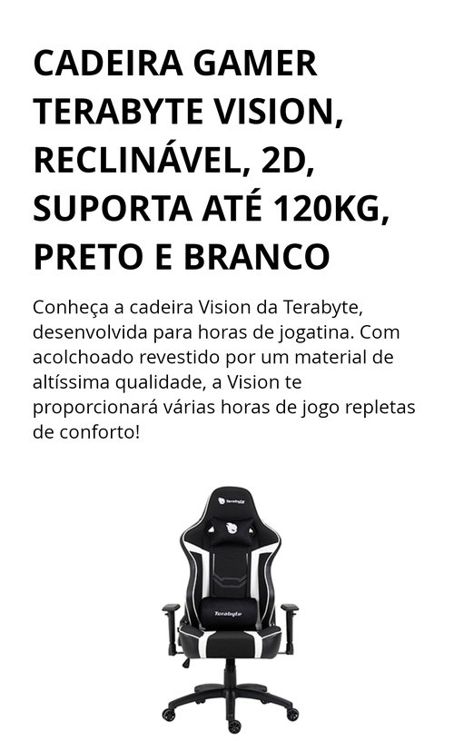 Cadeira Gamer Terabyte Vision, Reclinável, 2D, Preto e Branco