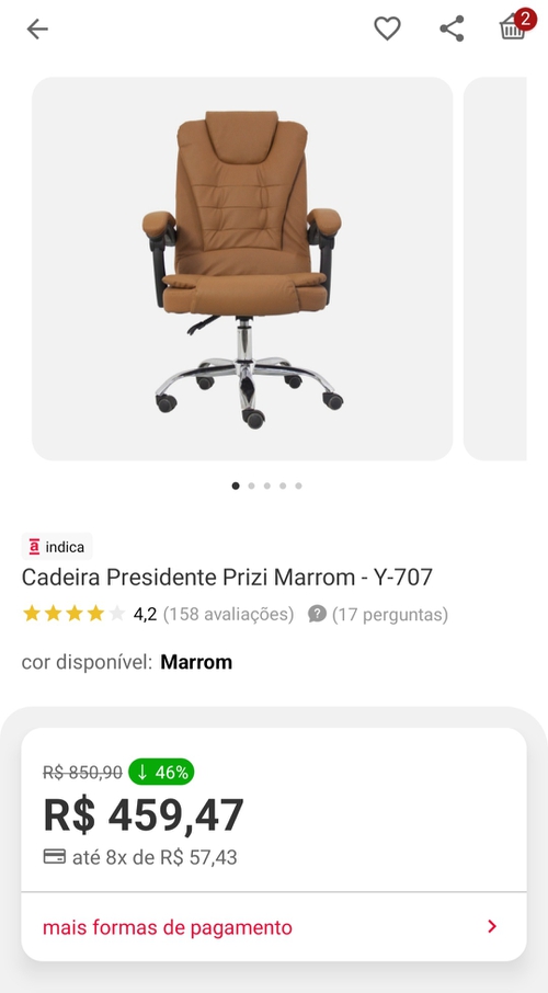 Tenho a dois anos. Não indico. No início ela é confortável, apresentando problema apenas no encosto, que não trava na altura desejada. Depois de um tempo ela fica extremamente desconfortável, a espuma parece ceder (tenho 85kg). O encosto também não atende minha altura (1.87). Como positivo, ela não descasca com o tempo.
