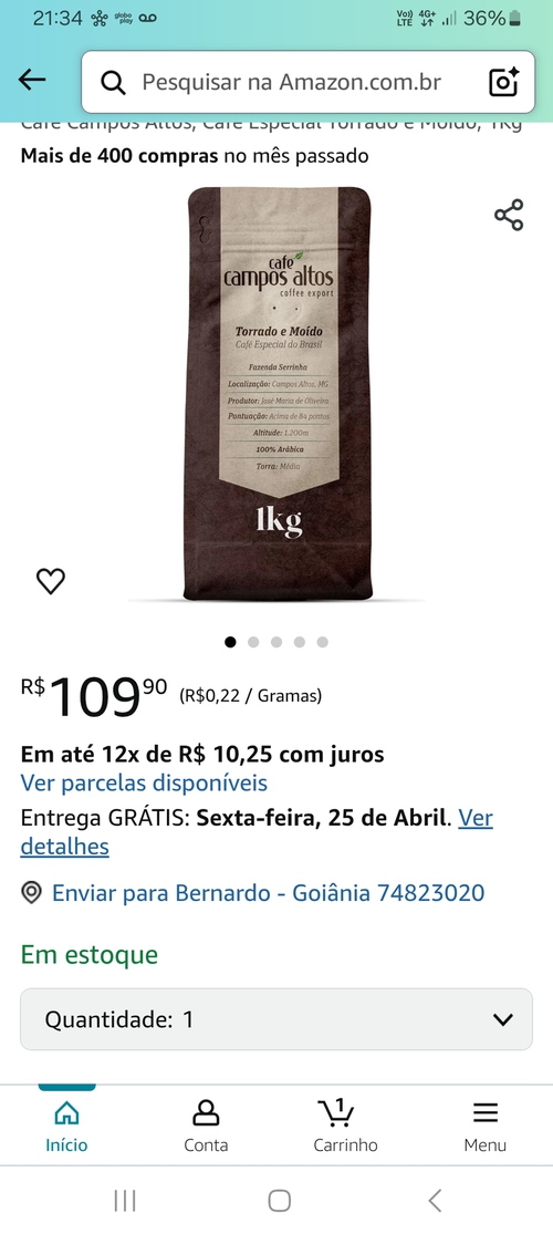 Comprei em outro promoção por um valor proximo, gostei bastante do café, principalmente na prensa francesa!