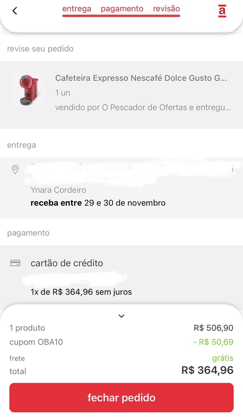 produto entregue pelas americanas e vendido pela loja “o pescador de ofertas”