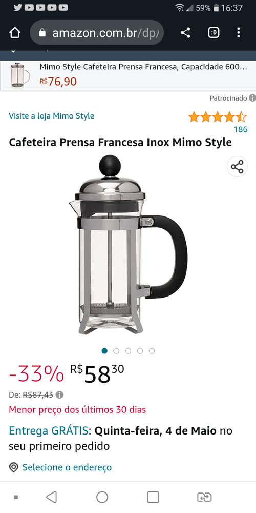R$65 aqui, mas algumas reclamações do material de baixa qualidade. Vidro trincando, metal enferrujando...