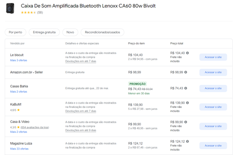 - Preço mais baixo conforme Google Shopping
