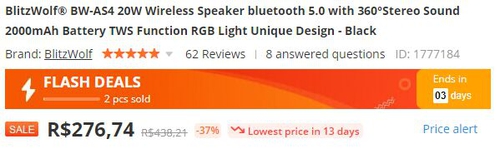 Caixa de Som BlitzWolf® BW-AS4 20W 2000mAh (Áudio 360º e RGB) | R$265