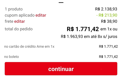 1x no cartão, AME, boleto ou Pix.