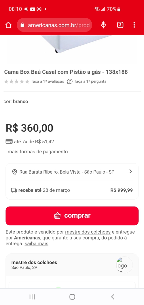 Simplesmente 1.399,00 de frete hahahahahah eu já tava puto pq ano passado comprei uma cama box casal no ML por 2100.