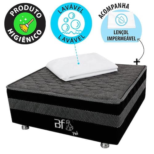 Cama Box Pet Com Lençol Impermeável Branco Para Cachorros e Gatos 60x60x24cm - Caminha Pet - BF Colchões