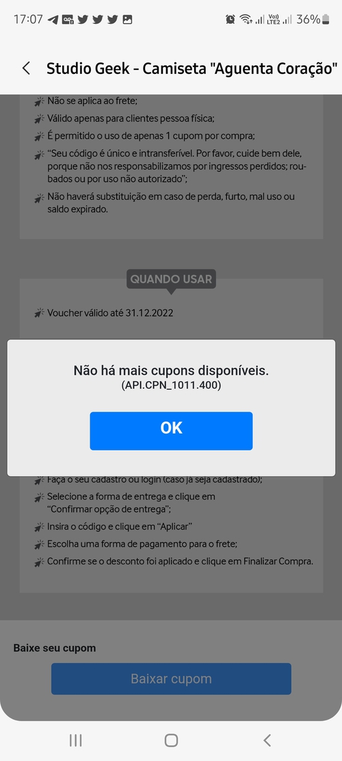 Não consegui pegar, quem quiser/puder passar o cupom tô aceitando 😅