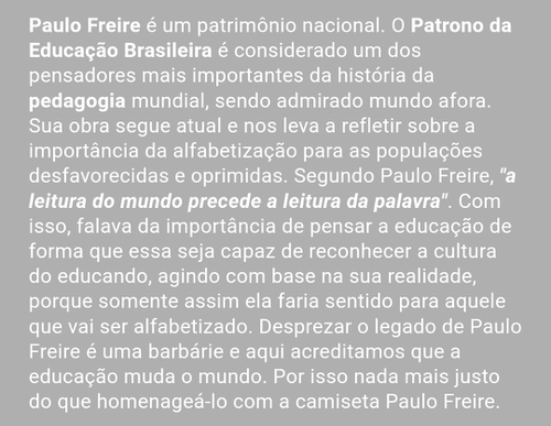 Camiseta Paulo Freire - Paulo Freire na Chico Rei - Chico Rei