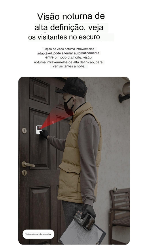 Chamada de vídeo: fácil de lidar com os visitantes, quando alguém pressiona a campainha, a campainha envia uma notificação para o telefone e o proprietário pode entrar na interface de conversa por vídeo do telefone.