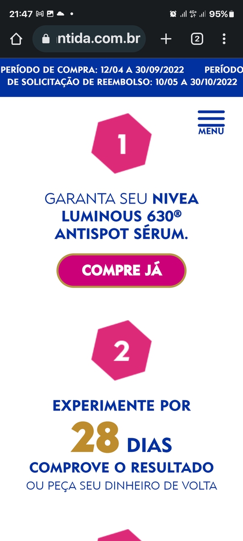 Obs: Para participar o consumidor interessado deverá adquirir NIVEA Luminous 630® Antispot Sérum (outros produtos dessa linha não participam desta campanha).