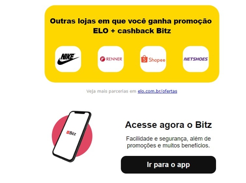 Usando seu cartão físico ou virtual Bitz, emcompras acima de R$35 você ganha R$5 de Cashback e ainda pode aproveitar a oferta ELO e levar mais 10% de desconto em compras no Magalu!Aproveite com Bitz!