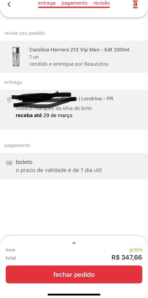 Parcelado, vendido e entregue por Beautybox (Grupo Boticário, o mesmo da Beleza na Web).