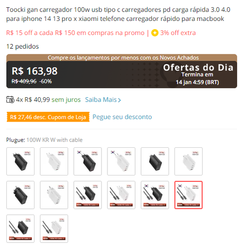 Eu só arriscaria em baseus ou ungreen. O meu da baseus paguei 183 no de 100w em uma promoção da shopee.