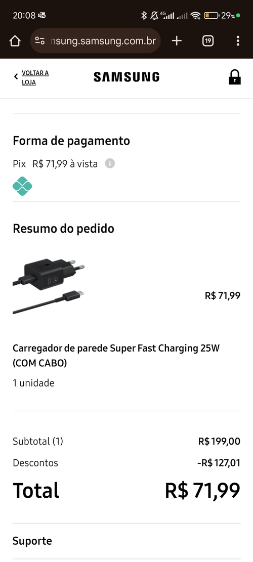 Peguei um da Essager de 33w no ali por menos de 30 reais ja com imposto, ta fazendo o mesmo que esse da Samsung. Tenho esse mesmo da Samsung e ambos são idênticos na questão de velocidade de carregamento.
