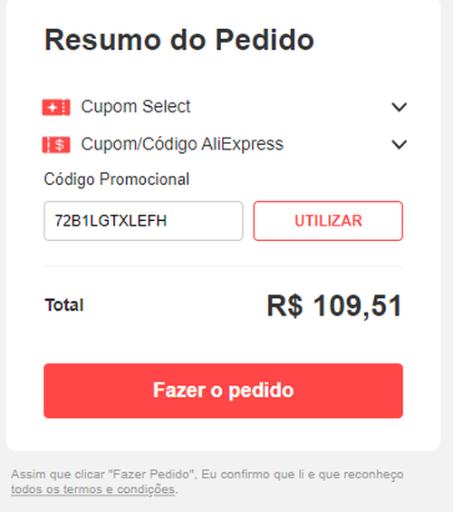 Forma de pagamento: em até 6 vezes sem juros, necessário pegar o cupom da loja ou digitar o cupom informado