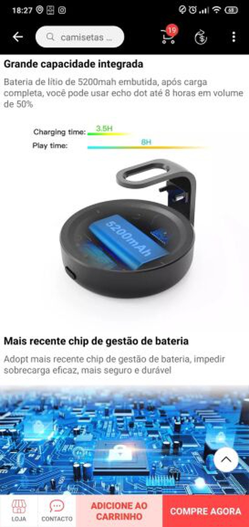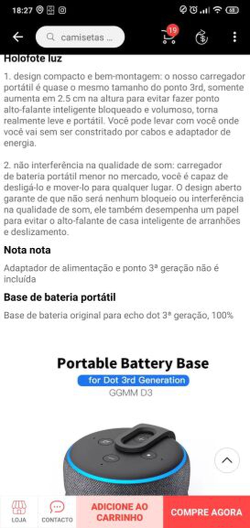 Carregador sem fio para echo dot 3 - 5200mah - R$135