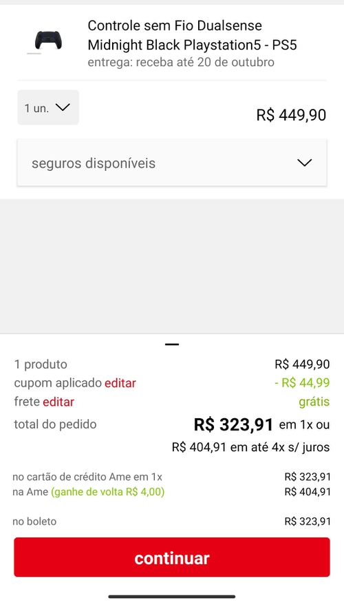Comprando com o cartão do ame, volta 32,40 de cashback.